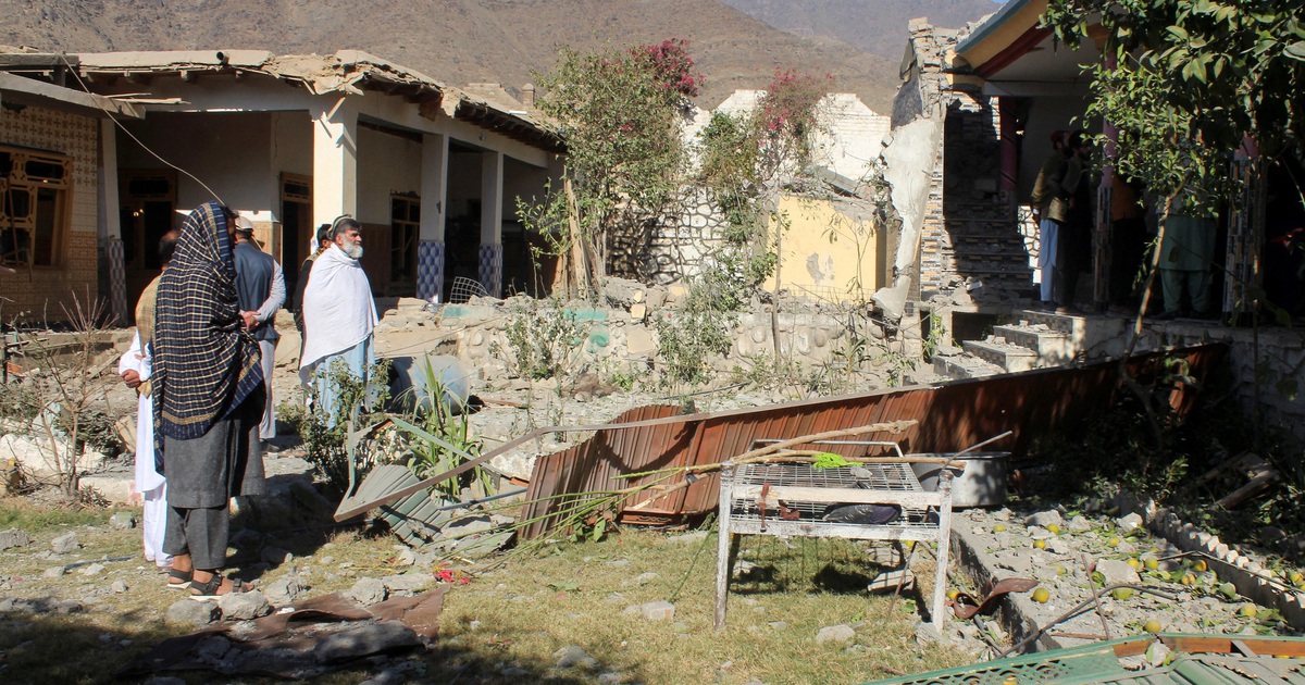 Trước những ngôi nhà bị hư hại ở Asadabad, tỉnh Kunar, Afghanistan mà chính thể Taliban cho là do Pakistan tấn công ngày 25.11